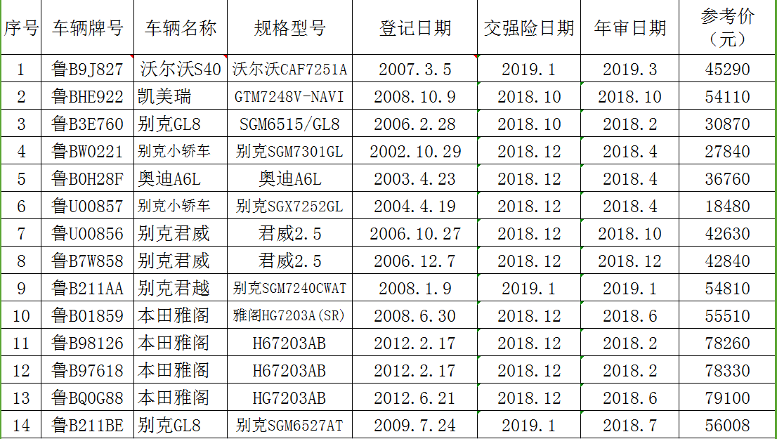 | 上一篇:5月4日聊城地區(qū)14處房屋三年期租賃權(quán)拍賣會(huì) | 下一篇:4月28日車輛、設(shè)備等拍賣會(huì) |