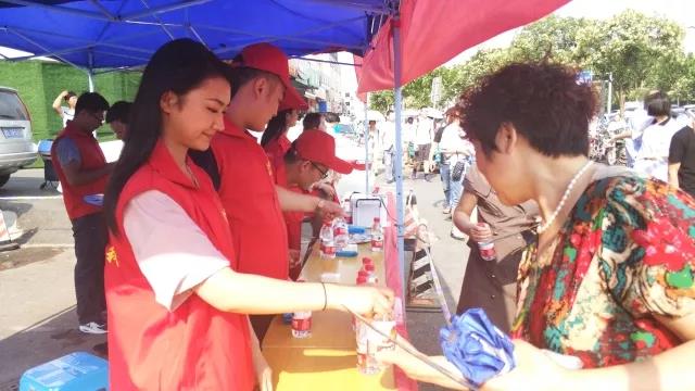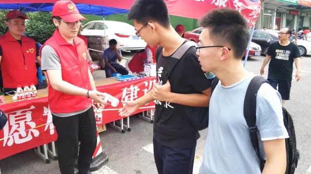 在考場外搭起的遮陽棚中,為考生和家長提供了礦泉水、紙巾、應急藥品、考試文具、扇子、手機充電設備等,并提供休息場所。志愿者們熱情地把愛心物品送到考生和家長的手中,并鼓勵考生們要放松心態(tài),沉著冷靜,相信自己,考出水平。志愿者們還在考前考后清理周邊垃圾,積極維護學校周邊的公共衛(wèi)生和秩序,為考生營造了良好的考試環(huán)境,使在考場外等待的家長倍感親切、溫暖。