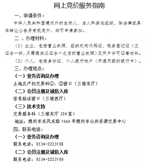 有意參加競價(jià)者,須登錄德州市公共資源交易平臺網(wǎng)上交易系統(tǒng)(http://www.dzzyjy.gov.cn),按《國有產(chǎn)權(quán)網(wǎng)上競價(jià)服務(wù)規(guī)程》、《產(chǎn)權(quán)競買人操作手冊》規(guī)定的操作程序參加競買(詳情見“轉(zhuǎn)讓文件”)。