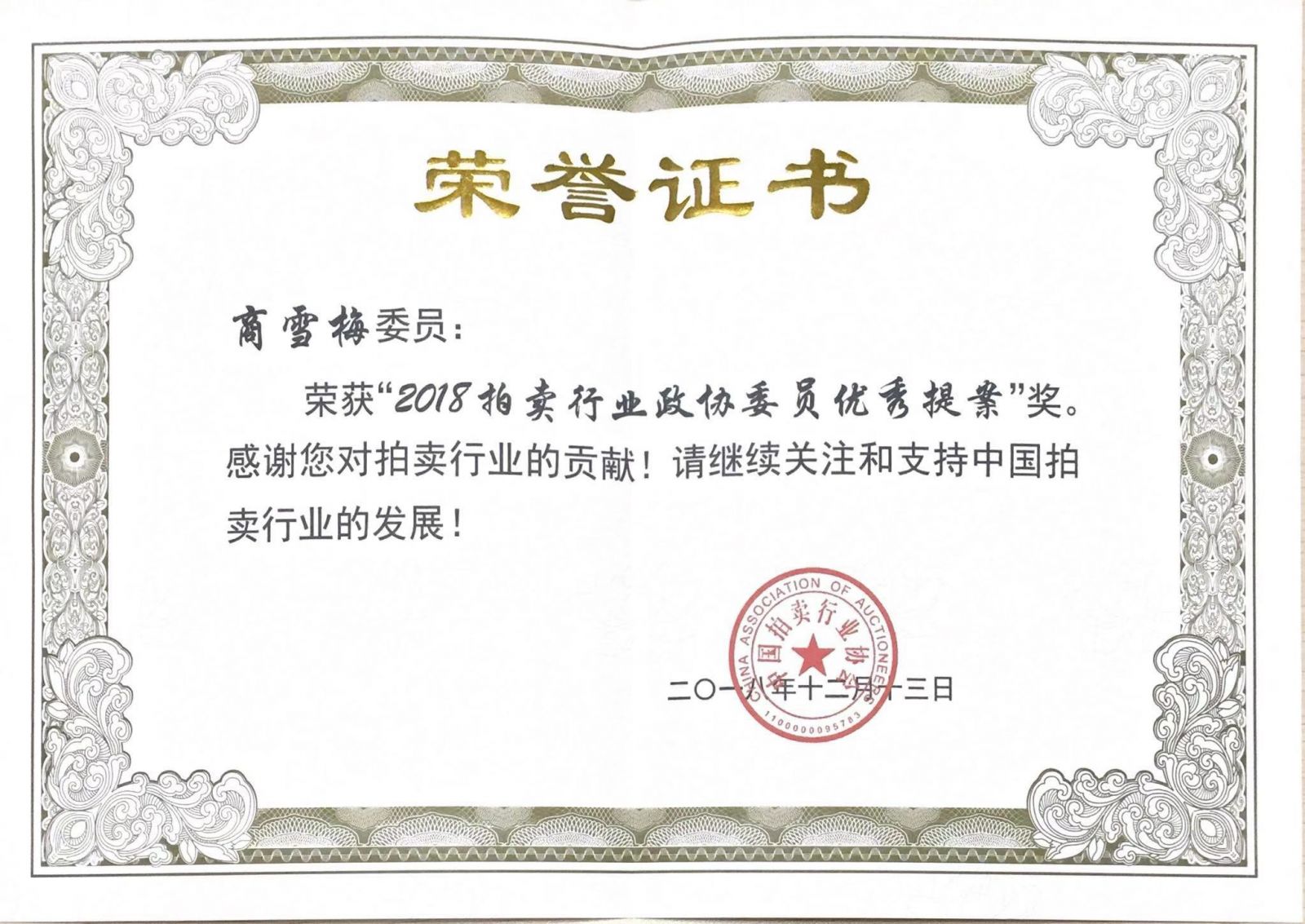 13日,董事長(zhǎng)商雪梅作為省政協(xié)委員、總經(jīng)理位琳作為企業(yè)所在區(qū)政協(xié)委員參加了2018年拍賣行業(yè)“兩會(huì)”代表、委員座談會(huì)。商雪梅撰寫的提案《關(guān)于破解“執(zhí)行難”,充分發(fā)揮拍賣機(jī)構(gòu)網(wǎng)絡(luò)司法拍賣線下輔助職能的建議》榮獲“2018拍賣行業(yè)政協(xié)委員優(yōu)秀提案獎(jiǎng)”。