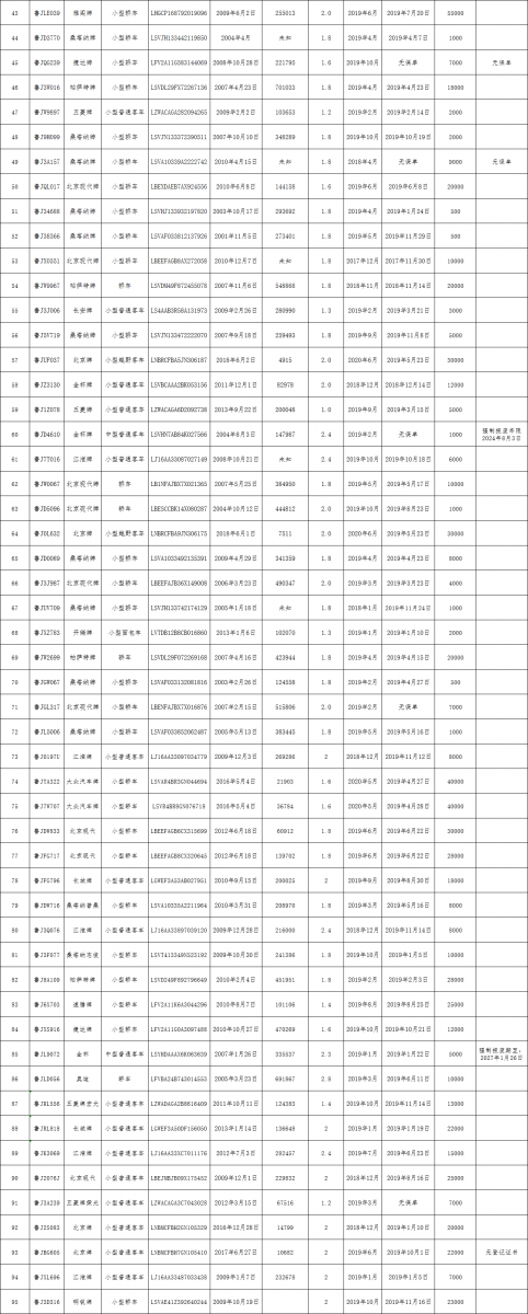 新泰市事業(yè)單位及市直企業(yè)公務(wù)用車一宗,品牌類型有:大眾、現(xiàn)代、長(zhǎng)城等;