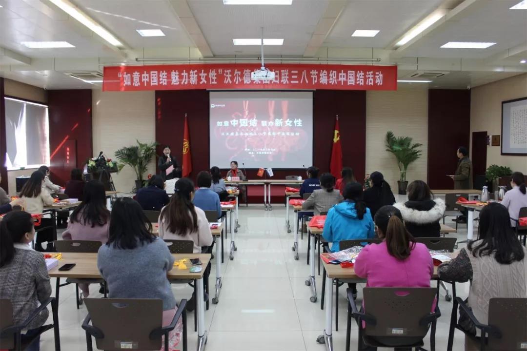三八婦女節(jié)來臨之際,為豐富女職工的文化生活,沃爾德集團婦聯(lián)組織開展了以“如意中國結(jié),魅力新女性”為主題的編織中國結(jié)活動?;顒友埖街袊Y(jié)藝傳承人、濟南市十大民間藝術(shù)家、濟南市婦聯(lián)巾幗建功標兵、三八紅旗手尹崇芹老師進行教學(xué),集團婦聯(lián)主席、辦公室主任李群及30多位女職工參加活動。