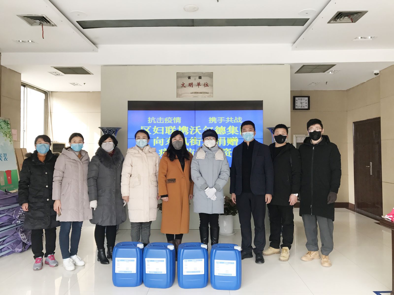 2月7日,在抗擊疫情的關(guān)鍵時(shí)刻,沃爾德集團(tuán)婦聯(lián)副主席、金諾國(guó)拍總經(jīng)理位琳及集團(tuán)代表,先后來到東風(fēng)街道、洪家樓街道、山大路街道、全福街道、郭店街道辦事處,代表集團(tuán)婦聯(lián)與歷城區(qū)婦聯(lián)一道,為基層送去消毒液防疫物資,為疫情防控保障貢獻(xiàn)巾幗力量。