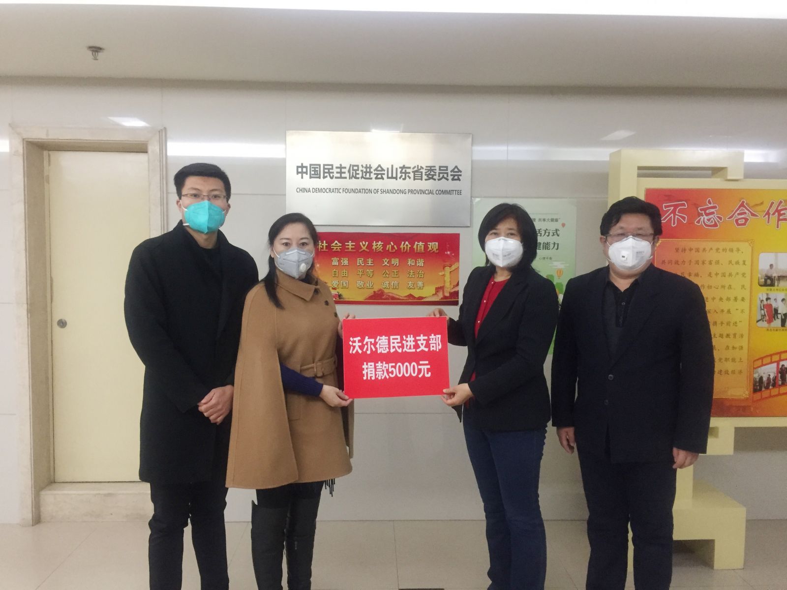 2月4日,沃爾德集團(tuán)民進(jìn)支部副主委、金諾國(guó)拍副董事長(zhǎng)胡懷英,民進(jìn)會(huì)員、金諾國(guó)拍總經(jīng)理助理主金坤前往中國(guó)民主促進(jìn)會(huì)山東省委員會(huì),代表沃爾德集團(tuán)及集團(tuán)民進(jìn)支部捐贈(zèng)愛心款5000元,用于支持山東民進(jìn)抗擊疫情第一線。