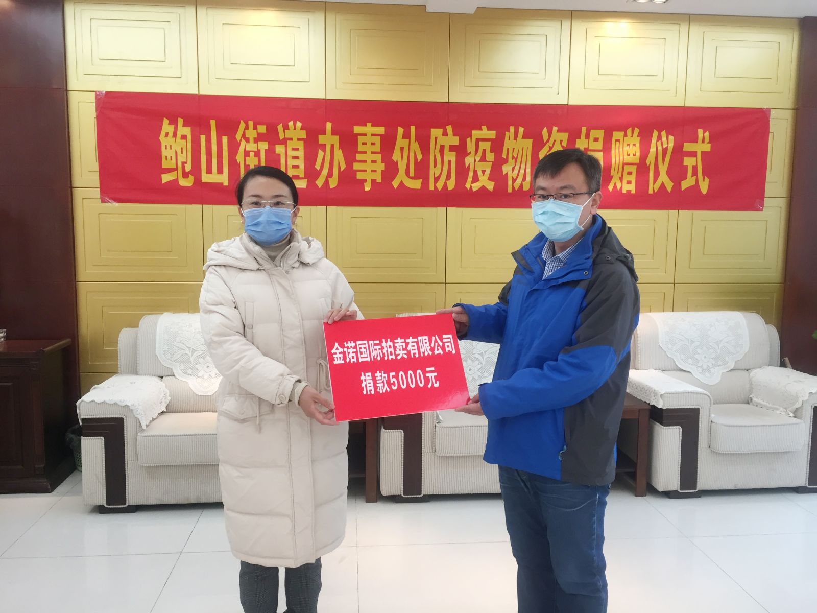2月6日,積極響應(yīng)中國(guó)拍賣行業(yè)協(xié)會(huì)《中國(guó)拍賣人,行動(dòng)起來,支援抗疫》倡議書,金諾國(guó)拍董事長(zhǎng)商雪梅、總經(jīng)理位琳前往歷城區(qū)鮑山辦事處,向不辭辛苦戰(zhàn)斗在抗疫情一線的領(lǐng)導(dǎo)和工作人員表示敬意和問候,并捐款5000元表示慰問。