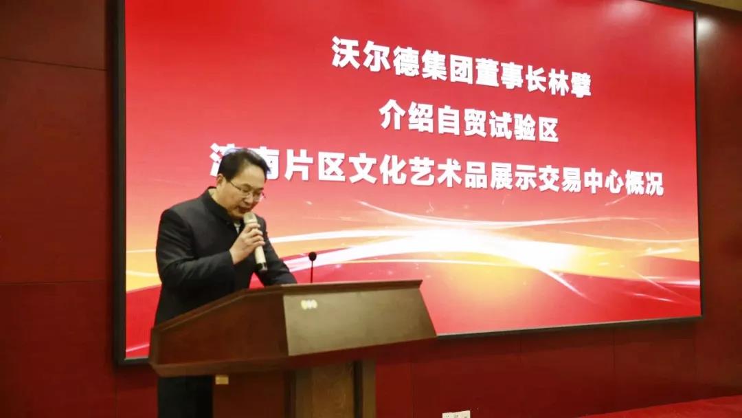 掛牌活動現(xiàn)場,沃爾德集團董事長林擘介紹了“自貿(mào)試驗區(qū)濟南片區(qū)文化藝術(shù)品展示交易中心”概況。