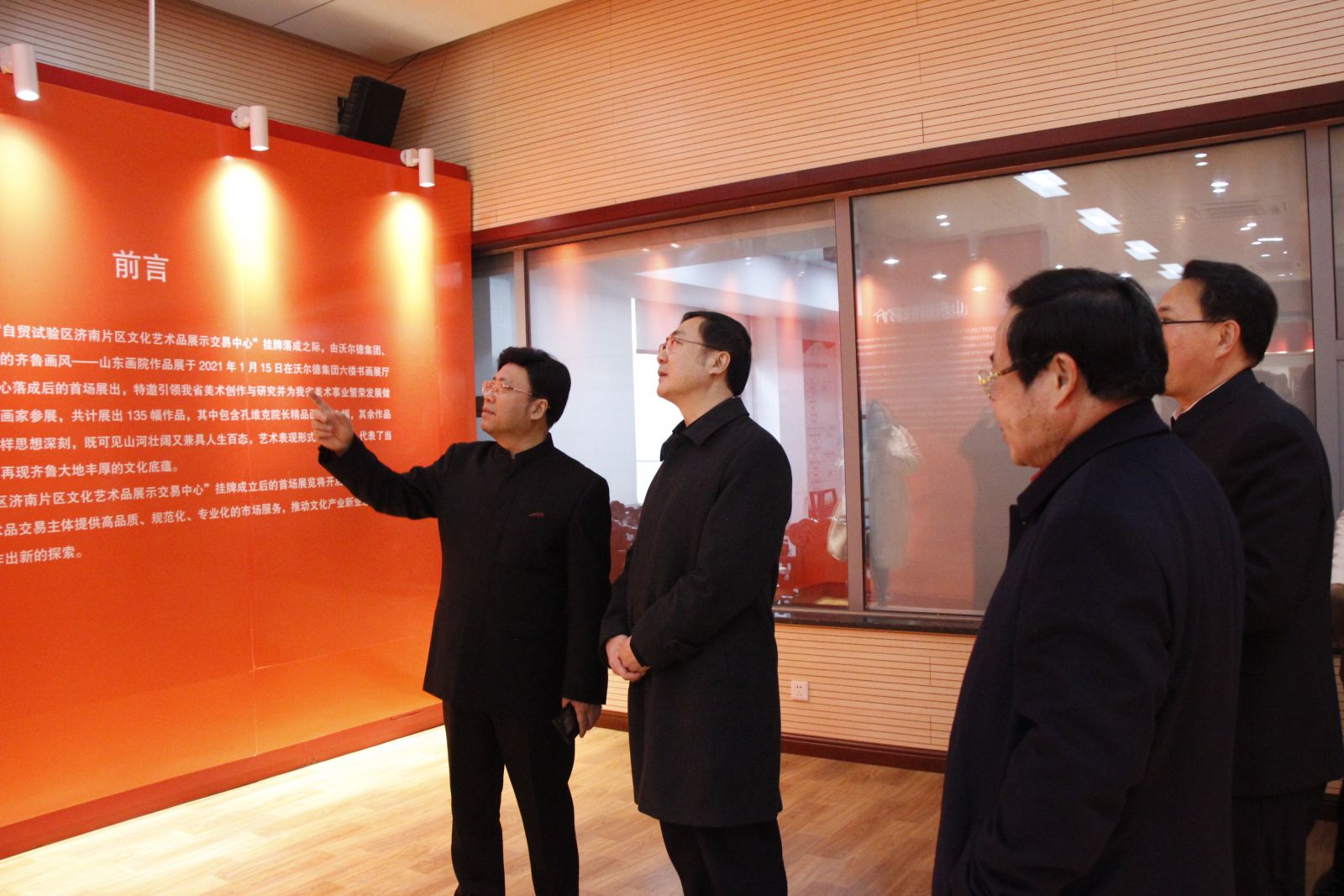 2021年1月22日下午,“自貿(mào)試驗區(qū)濟南片區(qū)文化藝術(shù)品展示交易中心掛牌活動”在沃爾德集團隆重舉行。市委常委、宣傳部部長楊峰,市委常委、自貿(mào)試驗區(qū)濟南片區(qū)管委會主任、濟南高新區(qū)管委會主任王宏志,全國政協(xié)委員、中國美協(xié)理事、民革中央畫院院長、山東省中國畫學會會長、山東畫院院長孔維克,市政府副秘書長、自貿(mào)試驗區(qū)濟南片區(qū)常務副主任劉艷秋,市委宣傳部副部長趙善海,濟南日報報業(yè)集團副總編輯馬凱,市文化和旅游局黨組副書記、副局長蘇文,沃爾德集團董事長林擘,金諾國拍集團董事長商雪梅等出席活動,金諾國拍集團總裁位琳主持活動。