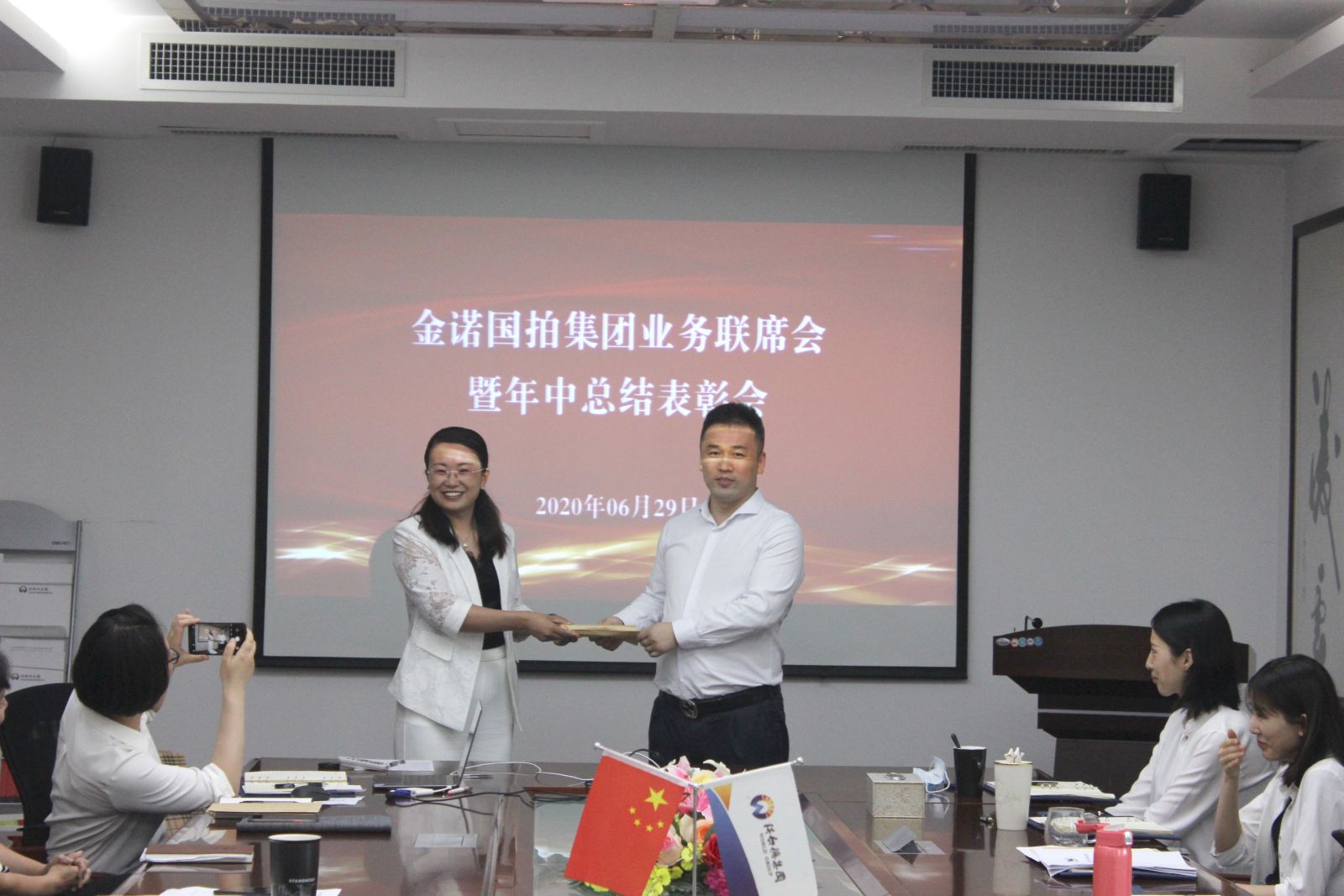 6月29日,金諾國拍集團(tuán)成功召開“雙月度業(yè)務(wù)聯(lián)席會暨年中總結(jié)表彰會”。本次會議由總裁位琳主持,董事長商雪梅及全體駐濟(jì)管理人員參加。