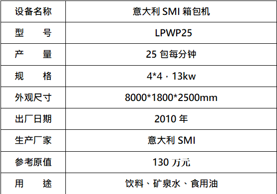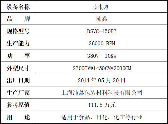標(biāo)的四:套標(biāo)機(jī),起拍價(jià):30萬(wàn)元(不含稅),標(biāo)的設(shè)有保留價(jià),競(jìng)買保證金6萬(wàn)元。已拆機(jī),設(shè)備完好。