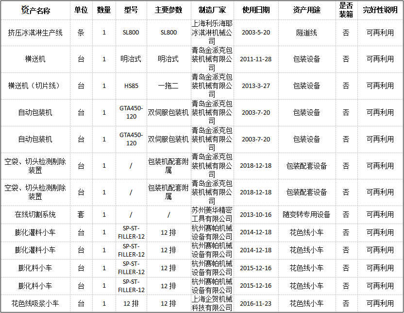 受委托,我公司將于2022年2月16日下午15時在金拍網(wǎng)平臺https://www.jinpaiwang.com.cn以網(wǎng)絡(luò)競價的方式公開處置擠壓冰淇淋生產(chǎn)線、前處理系統(tǒng)設(shè)備、12排小車、包裝機(jī)等(具體見標(biāo)的詳情)。起拍價格:1092610 元(含13%稅),設(shè)有保留價,競買保證金20萬元。