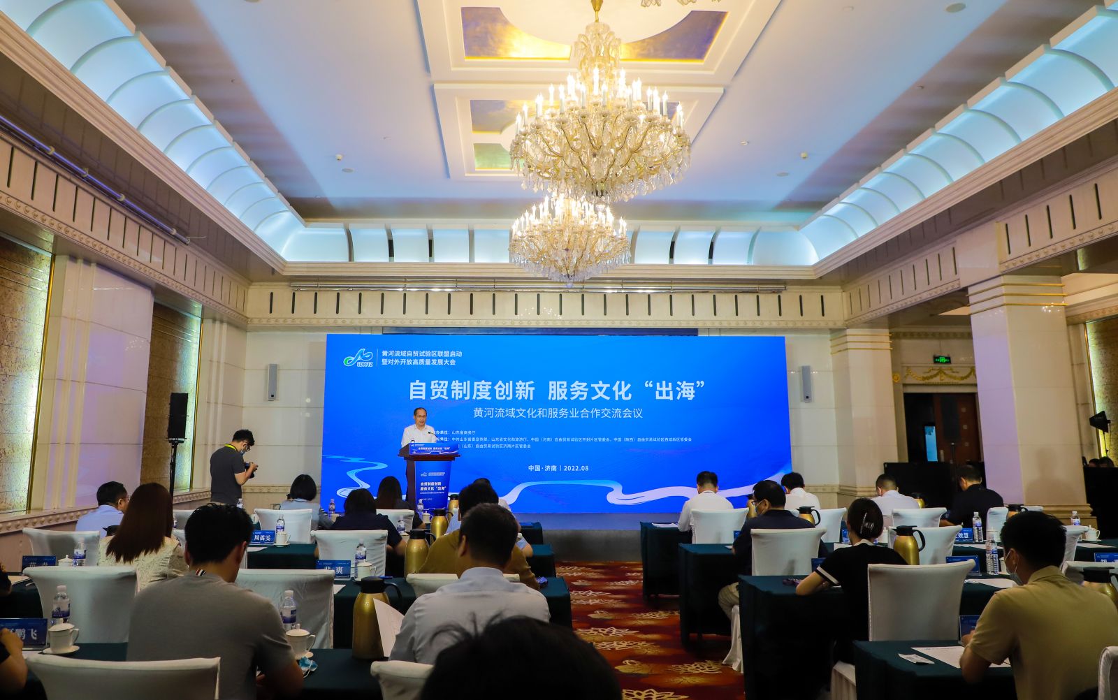 黃河流域自貿(mào)試驗(yàn)區(qū)聯(lián)盟啟動(dòng)暨對(duì)外開放高質(zhì)量發(fā)展大會(huì)--黃河流域文化和服務(wù)業(yè)合作交流會(huì)2022年8月23日下午在山東大廈濟(jì)南廳舉辦。中國(河南)自由貿(mào)易試驗(yàn)區(qū)開封片區(qū)管委會(huì)、中國(陜西)自由貿(mào)易試驗(yàn)區(qū)西咸新區(qū)管委會(huì)有關(guān)負(fù)責(zé)同志,山東省委宣傳部、山東省商務(wù)廳、山東省文化和旅游廳有關(guān)負(fù)責(zé)同志,以及濟(jì)南市有關(guān)部門負(fù)責(zé)同志、中國(山東)自由貿(mào)易試驗(yàn)區(qū)濟(jì)南片區(qū)管委會(huì)有關(guān)負(fù)責(zé)同志,開封片區(qū)、西咸新區(qū)、濟(jì)南片區(qū)重點(diǎn)企業(yè)代表參加活動(dòng)。金諾國拍集團(tuán)總裁位琳參加大會(huì)。