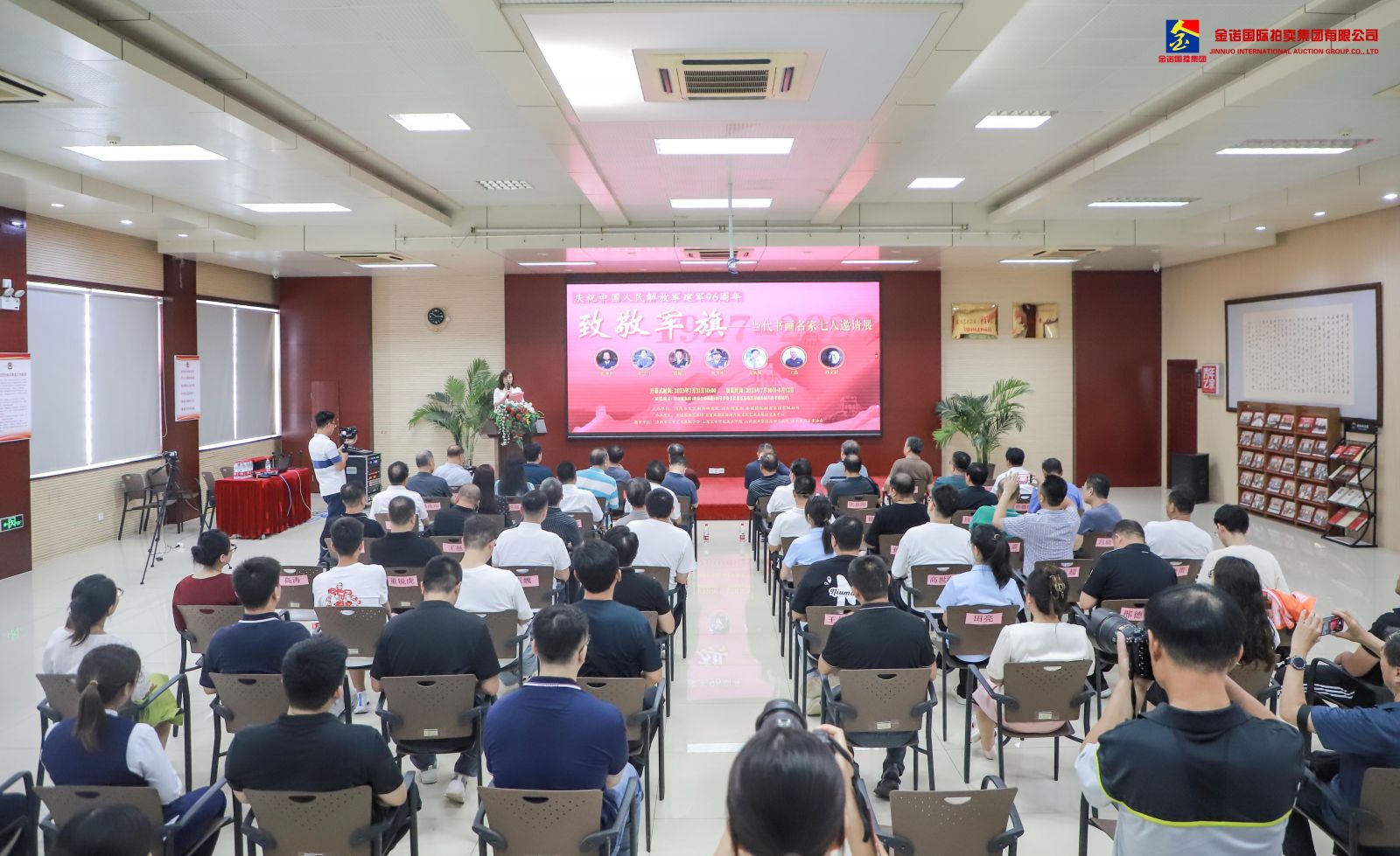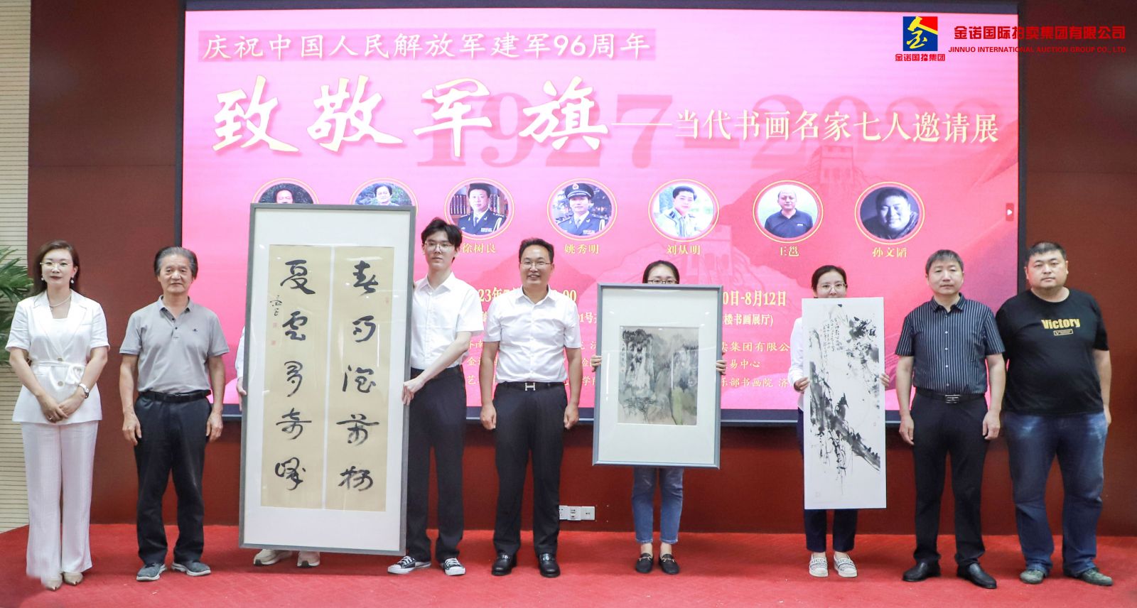 7月31日上午,致敬軍旗——當(dāng)代書畫名家七人邀請展開幕式在沃爾德集團(tuán)舉行。展覽由濟(jì)南市文藝創(chuàng)作研究院、沃爾德集團(tuán)、金諾國拍集團(tuán)聯(lián)合主辦,濟(jì)南市文聯(lián)指導(dǎo),金諾國拍藝術(shù)館與自貿(mào)試驗(yàn)區(qū)濟(jì)南片區(qū)文化藝術(shù)品展示交易中心承辦。