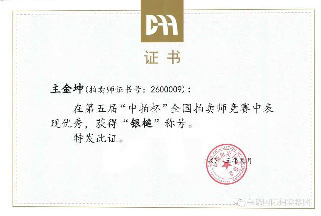 主金坤 第五屆全國拍賣師競賽“銀槌”