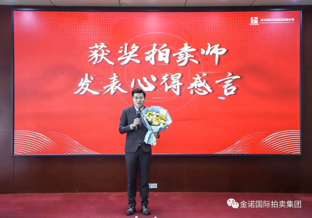 榮譽和掌聲于我而言是對過去十年的小結(jié),是一種鼓勵認可,更是一種責任擔當,拍賣師之路既是一條傳承之路,也是創(chuàng)新發(fā)揚之路,我們今天所處的時代,是最好的時代,我們擁有比任何時候都更接近實現(xiàn)金諾拍賣朝著更高更大更廣闊的發(fā)展舞臺前進之機會,在這里我要向公司所有的年輕拍賣師們發(fā)出號召,希望我們能夠堅定理想信念、勇于擔當,以夢為馬、不負韶華,做好金諾事業(yè)的精神傳承者和行業(yè)未來的擔當者,為把金諾打造成為“中國著名拍賣集團企業(yè)”和“全國資產(chǎn)拍賣行業(yè)引領(lǐng)者”貢獻青春力量。