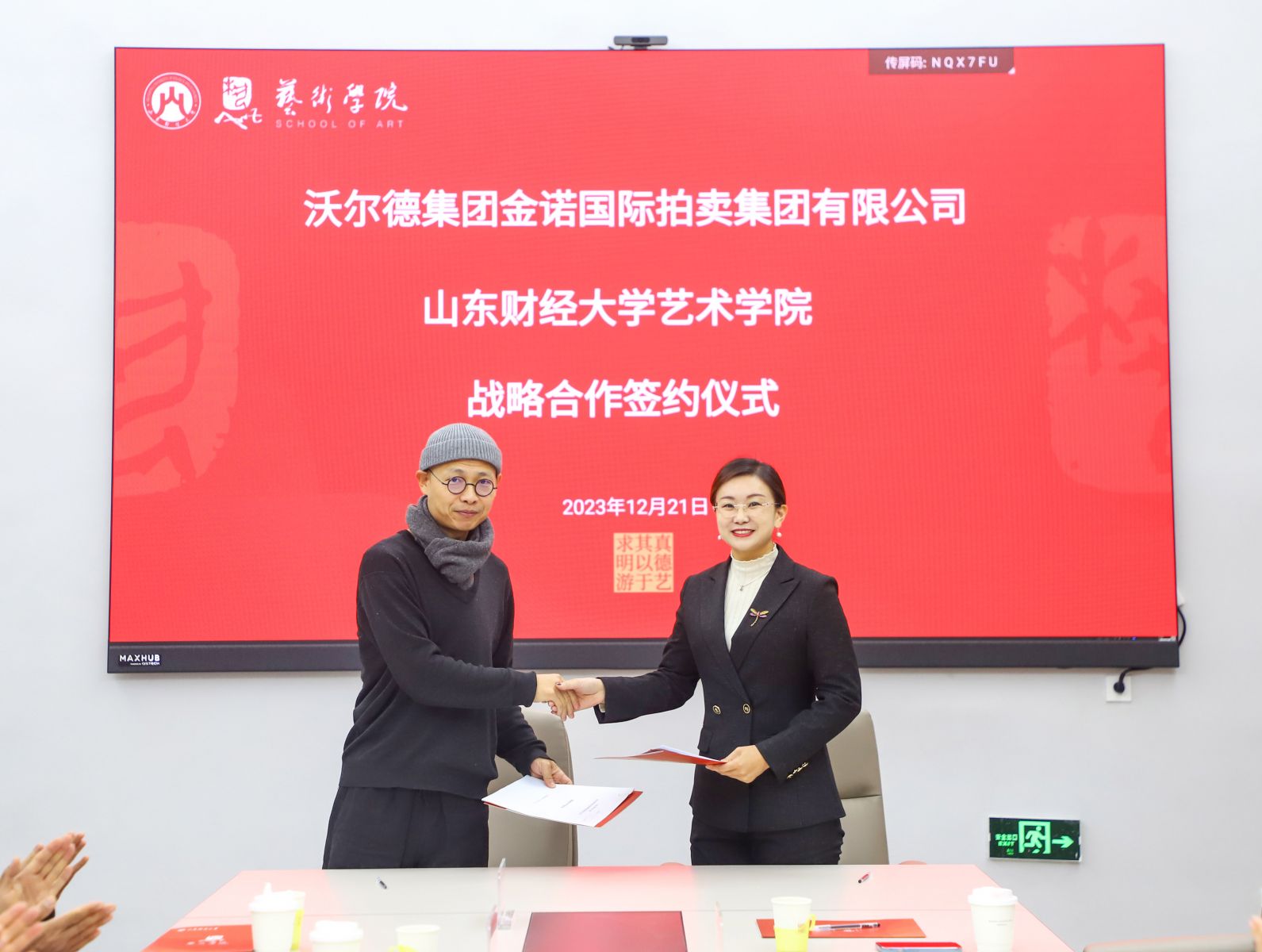未來山東財經(jīng)大學(xué)藝術(shù)學(xué)院和沃爾德集團、金諾國拍集團將各自發(fā)揮優(yōu)勢,在協(xié)同育才、實習(xí)就業(yè)、教學(xué)實踐、黨群建設(shè)這四方面進行深度合作,建立長效協(xié)作機制,搭建更廣泛、多層次、全方位、高水平的戰(zhàn)略合作平臺,實現(xiàn)資源共享、互惠互利,共同助力社會經(jīng)濟高質(zhì)量發(fā)展,攜手推動雙方合作邁上新臺階!