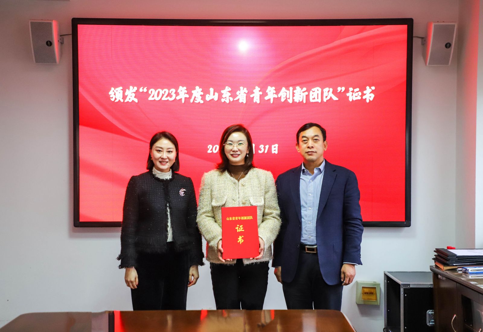 活動現(xiàn)場,王華杰為企業(yè)代表位琳頒發(fā)“2023年度山東省青年創(chuàng)新團(tuán)隊(duì)”榮譽(yù)證書。