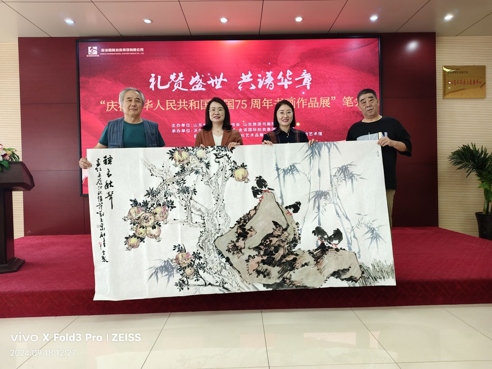 七十五載風(fēng)雨兼程,七十五載砥礪前行,為慶祝中華人民共和國(guó)75周年華誕,9月18日,山東省精品旅游促會(huì)在省旅促會(huì)副會(huì)長(zhǎng)單位沃爾德集團(tuán)展開(kāi)了一場(chǎng)精彩書(shū)畫(huà)筆會(huì)。活動(dòng)由省委原副秘書(shū)長(zhǎng)、山東省精品旅游促進(jìn)會(huì)會(huì)長(zhǎng)杜文彬帶隊(duì),著名書(shū)畫(huà)藝術(shù)家梁文博、劉玉泉、蕭維永、戴月、韓英偉、趙英水、馬林春、韓新濰、劉勝軍、郭執(zhí)銓、孫華進(jìn)、董廷新等參加,省旅促會(huì)副會(huì)長(zhǎng)、沃爾德集團(tuán)董事長(zhǎng)林擘,沃爾德集團(tuán)總裁、金諾國(guó)拍集團(tuán)董事長(zhǎng)商雪梅,金諾國(guó)拍集團(tuán)總裁位琳陪同。
