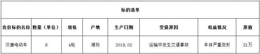 受委托,我公司對漢唐牌運損電動車一宗(詳見清單)進行招商。